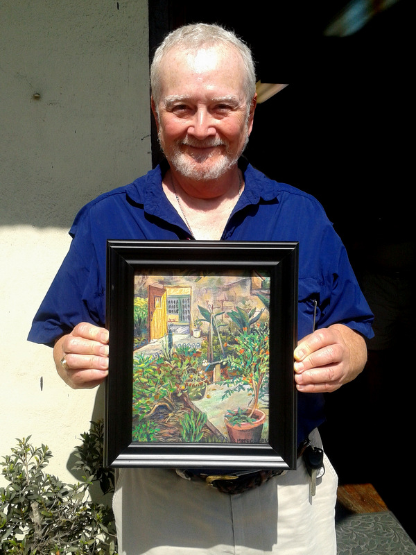 John Bouvier holding Michael’s finished painting. Photo by Jean